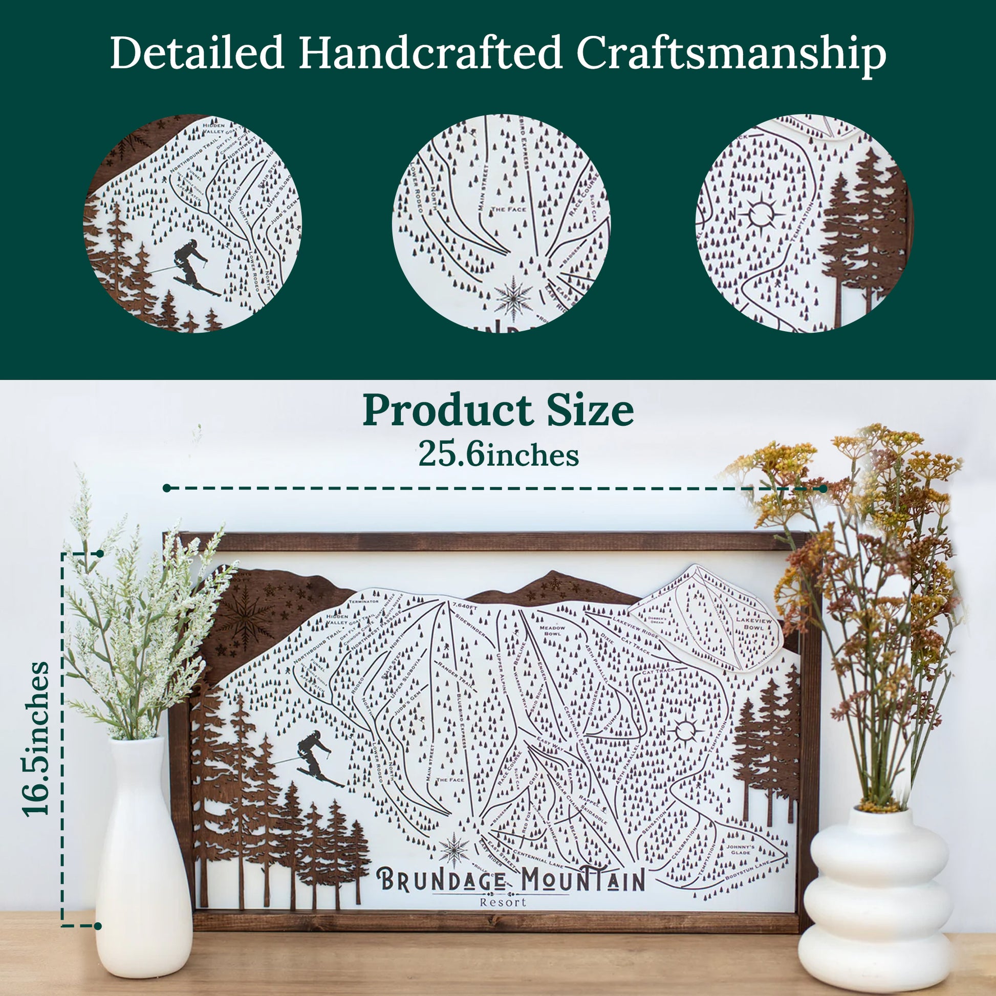 Brundage Mountain Ski Resort Map Sign | Laser Engraved & Framed Wall Art