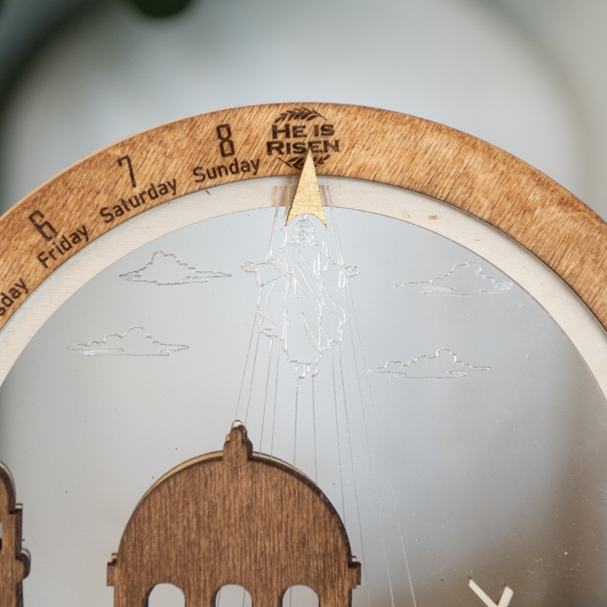 The multi-layered wooden design portrays the entire Holy Week: Christ entering Jerusalem on Palm Sunday, the Last Supper with His disciples, His prayer in Gethsemane, carrying the cross to Calvary, and the Empty Tomb. Each detail is carefully engraved, making the story tangible and unforgettable.