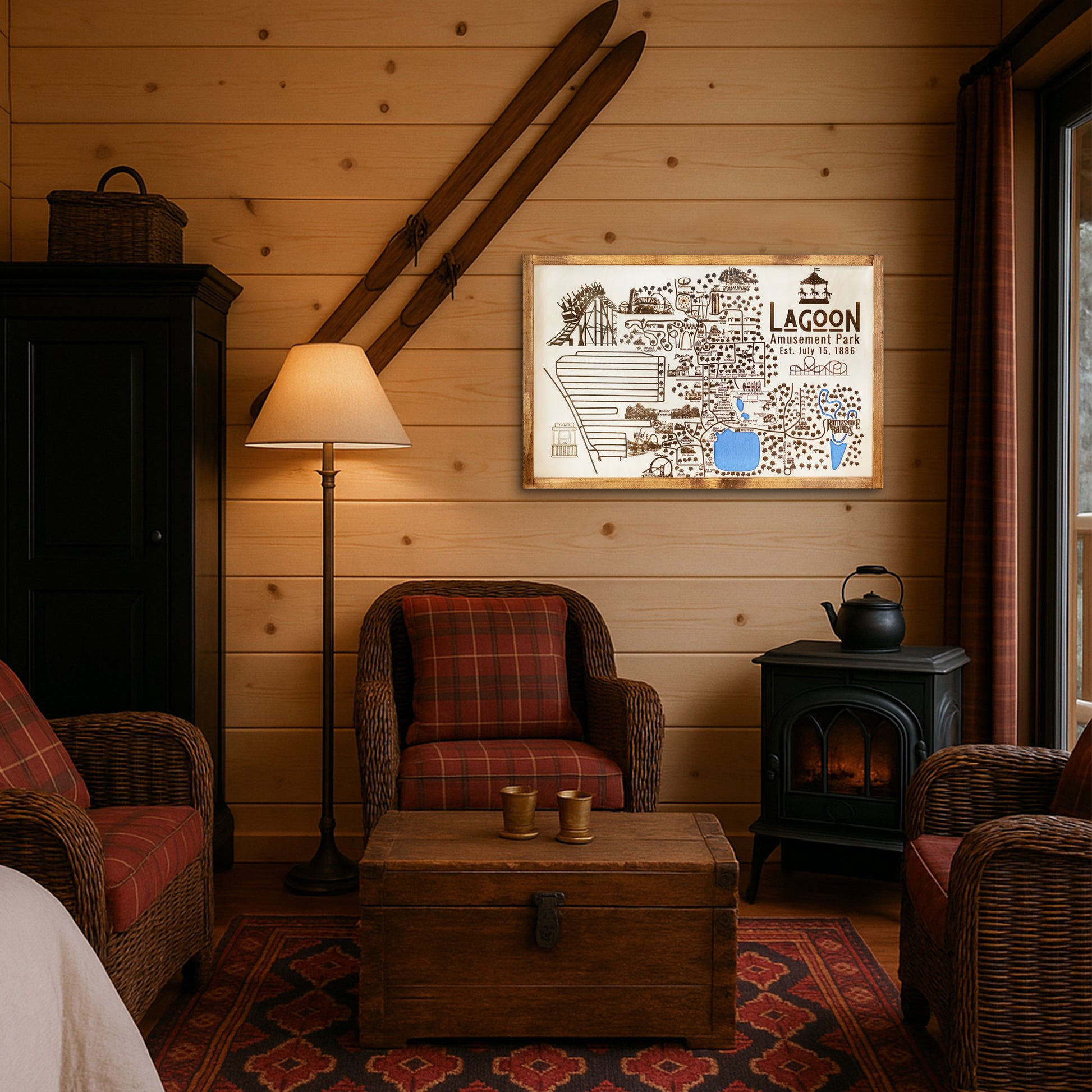 A perfect gift for Lagoon lovers and theme park enthusiasts, this framed wooden sign is a timeless tribute to Utah’s premier amusement park.