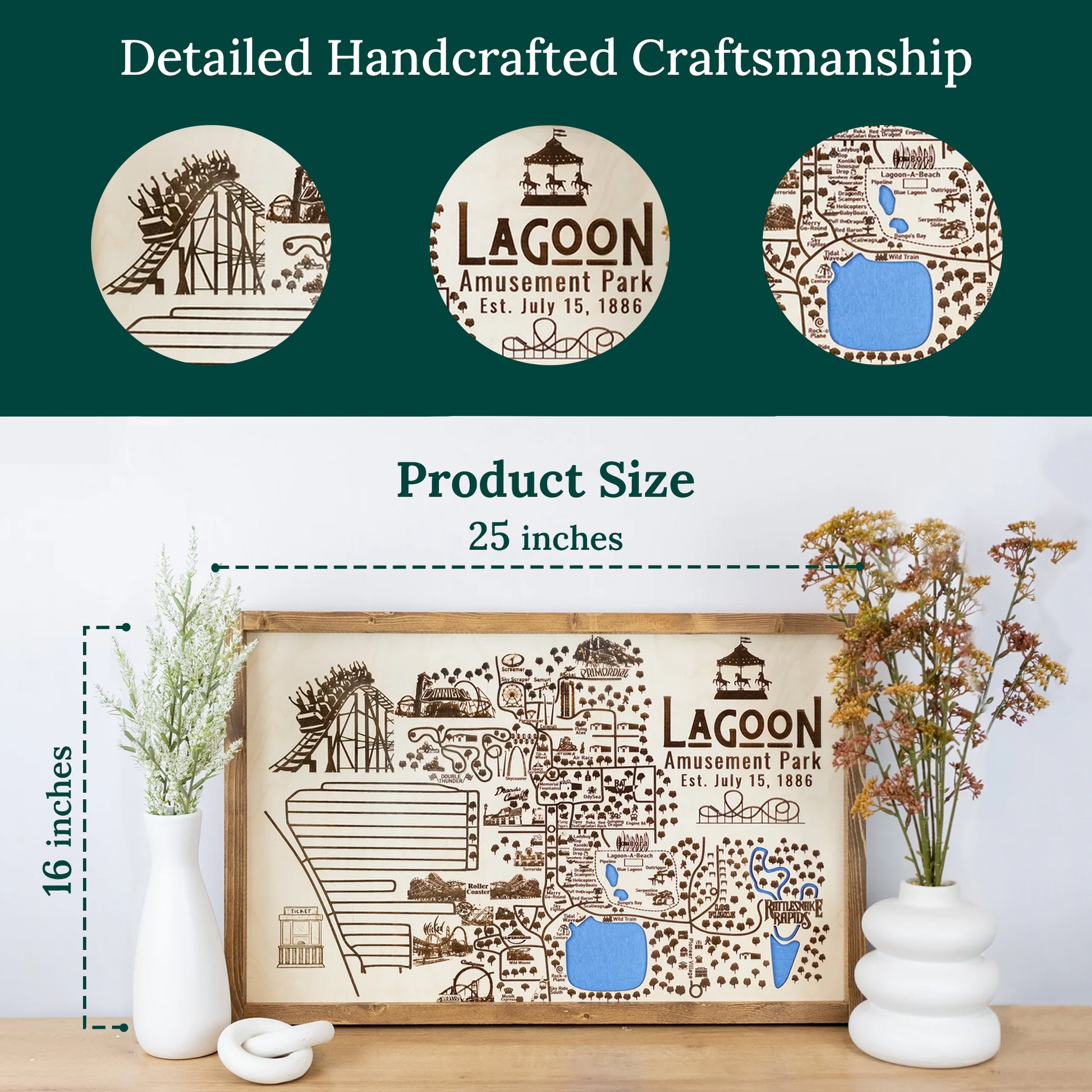 Lagoon Amusement Park Topo Map Sign | Laser Engraved & Framed Wall Art