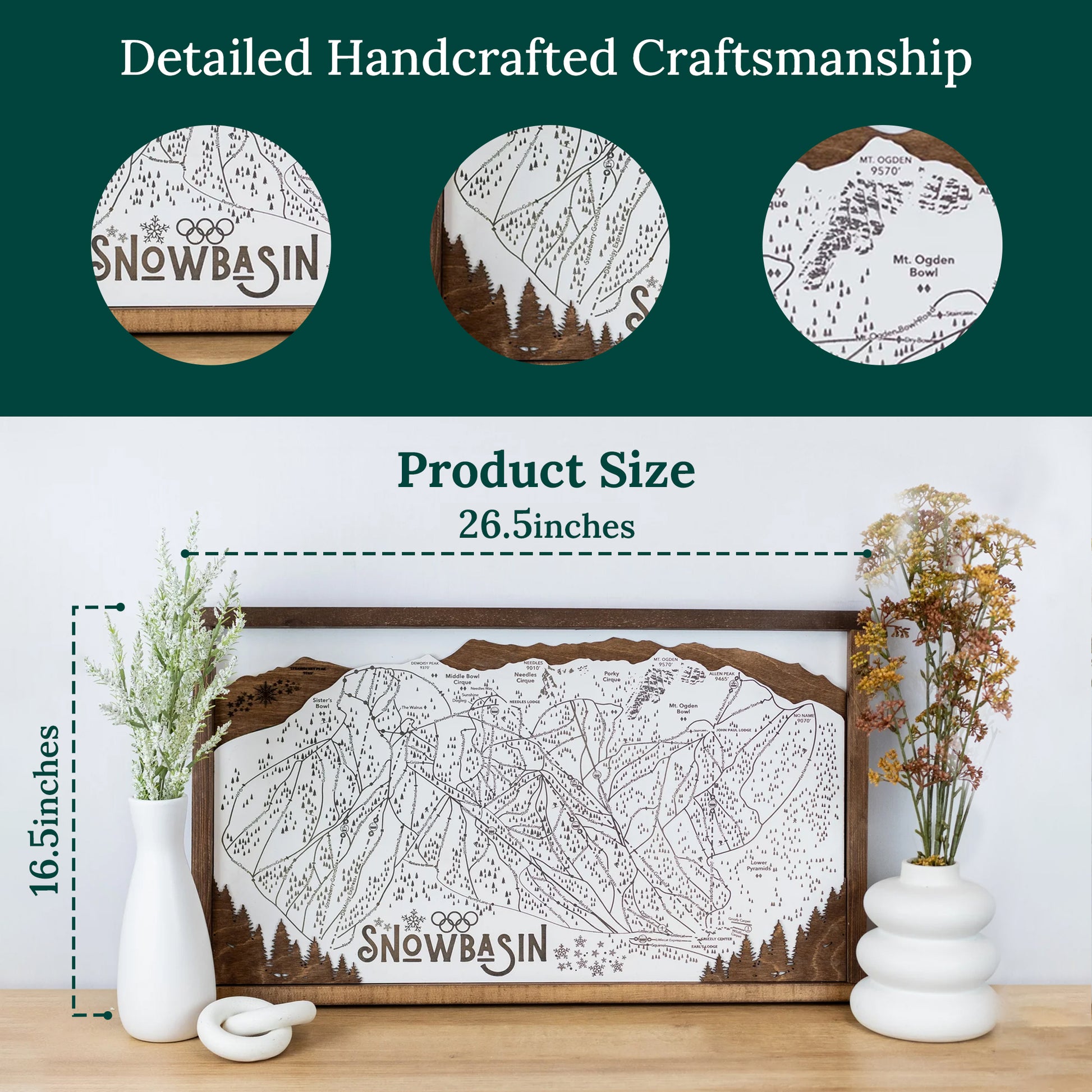 Snowbasin Ski Resort Map Sign | Laser Engraved & Framed Wall Art