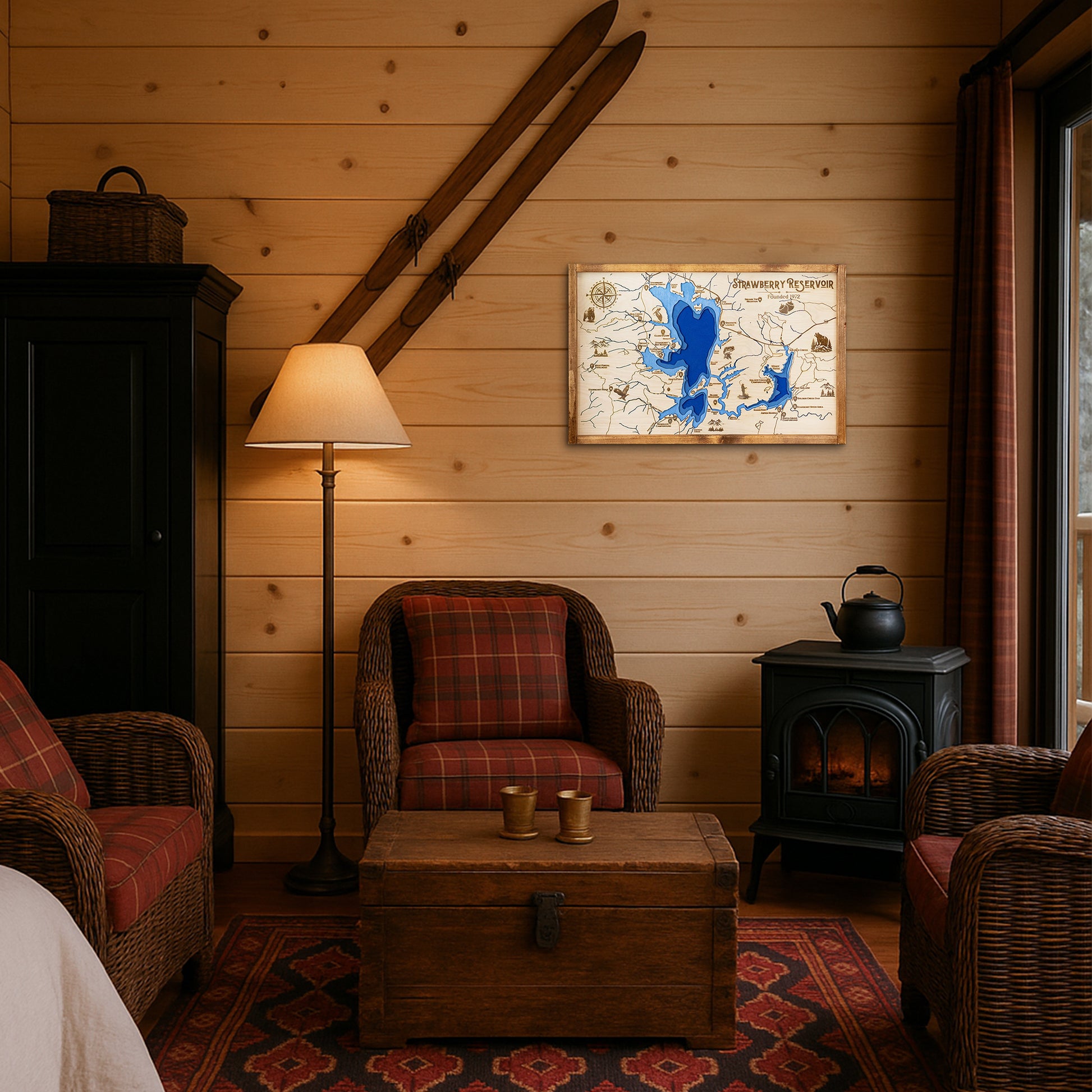 Perfect for any cabin, lodge, lake house, or office, this handcrafted wall art makes a stunning centerpiece for outdoor enthusiasts, anglers, and adventurers who cherish their time at Strawberry Reservoir.