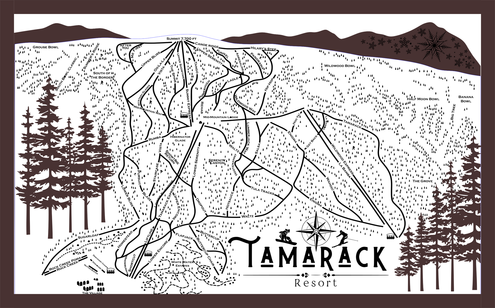 Tamarack Ski Resort Map Sign | Laser Engraved & Framed Wall Art